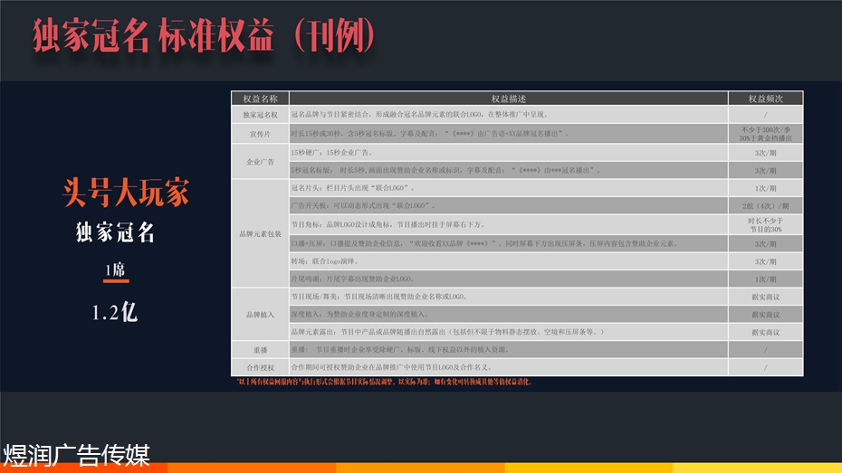 头号大玩家节目独家冠名,品牌特约赞助,指定产品,特别支持广告