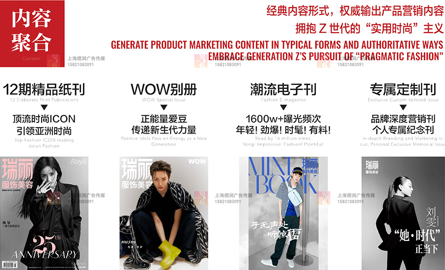 《瑞丽》是中国轻工业出版社出版的杂志,以平面期刊出版为主,同时大力发展新媒体、图书、无线移动等多种媒体的出版运营,以及广告、发行、活动推广、模特经纪、电子商务等多项业务。现已成为中国极具影响力的时尚媒体集团。